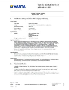 Safety Data Sheet SDS for VARTA Li Polymer Battery used in Pod