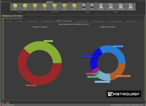 Screenshot of EZSlamX Software demonstrating door closing energy distribution and analysis with pie charts